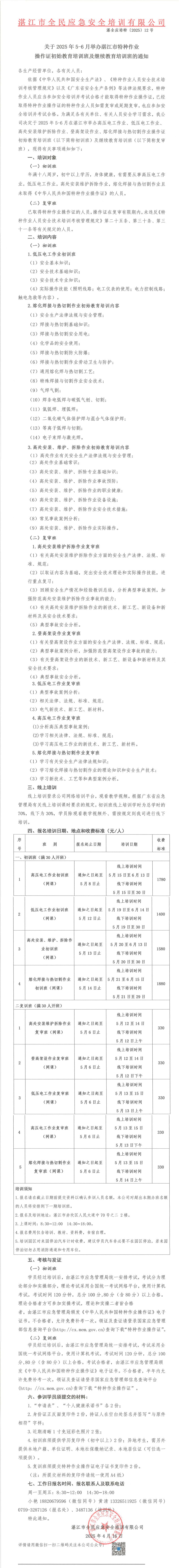 2025年5-6月高低壓電工作業、高處安裝維護拆除作業、登高架設作業、熔化焊接與熱切割作業初始教育培訓班及繼續教育培訓班的通知