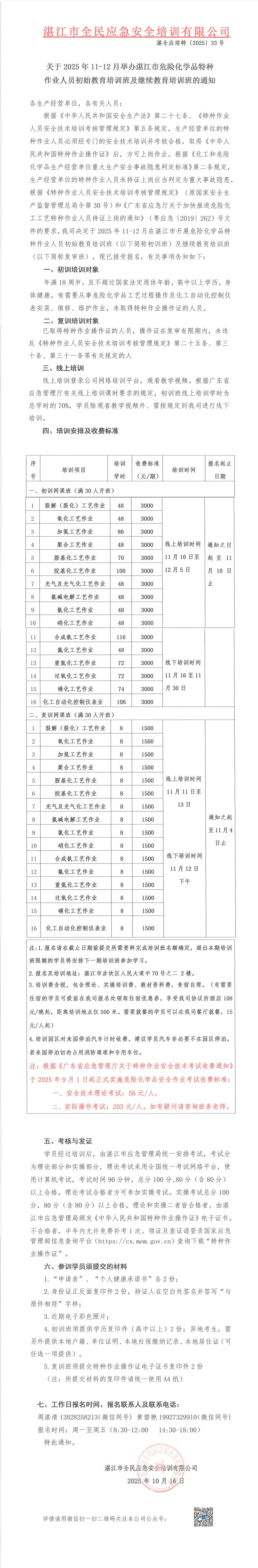 關(guān)于舉辦2025年11-12月份湛江市危險(xiǎn)化關(guān)于舉辦2025年11-12月份湛江市危險(xiǎn)化學(xué)品特種作業(yè)初訓(xùn)培訓(xùn)班的通知